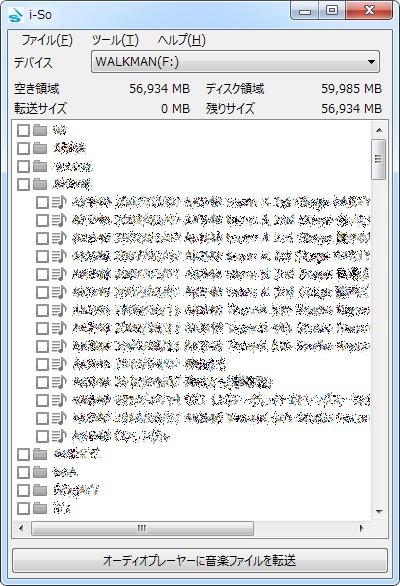 オーディオプレイヤーへ転送後の空き領域サイズを表示