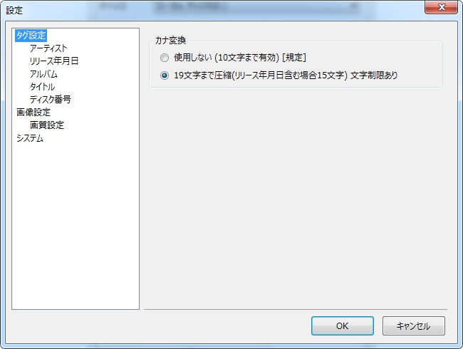 有効文字数の関係で「アルバムアーティスト(読み)」の有効文字数は