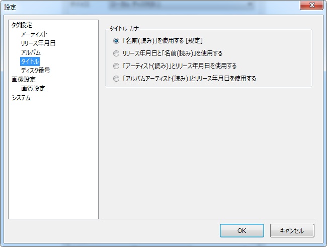 「アーティスト カナ」「アルバム カナ」「タイトル カナ」項目があります。