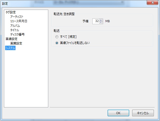 オーディオプレーヤー用に転送する画像ファイルおよび