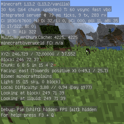 [F3]キーで表示される座標でよく使われるのは2種類