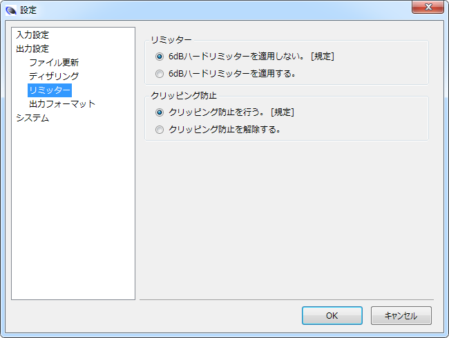 音量上限を超えない処理(クリッピング防止)を指定できます。