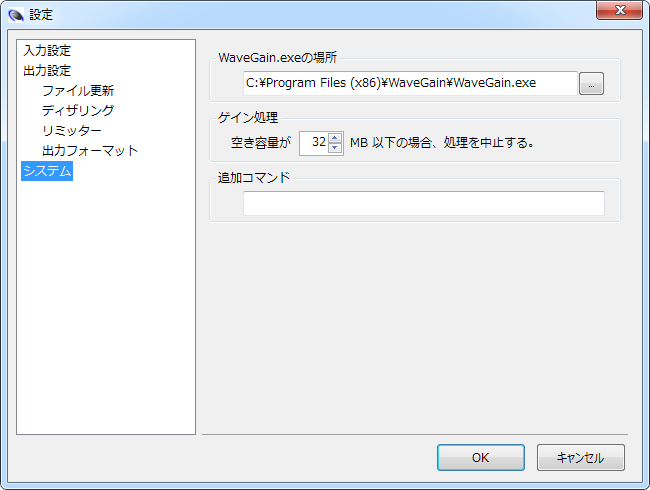 waveファイルにゲイン処理を行った際、作成日時、更新日時の更新を指定できます。